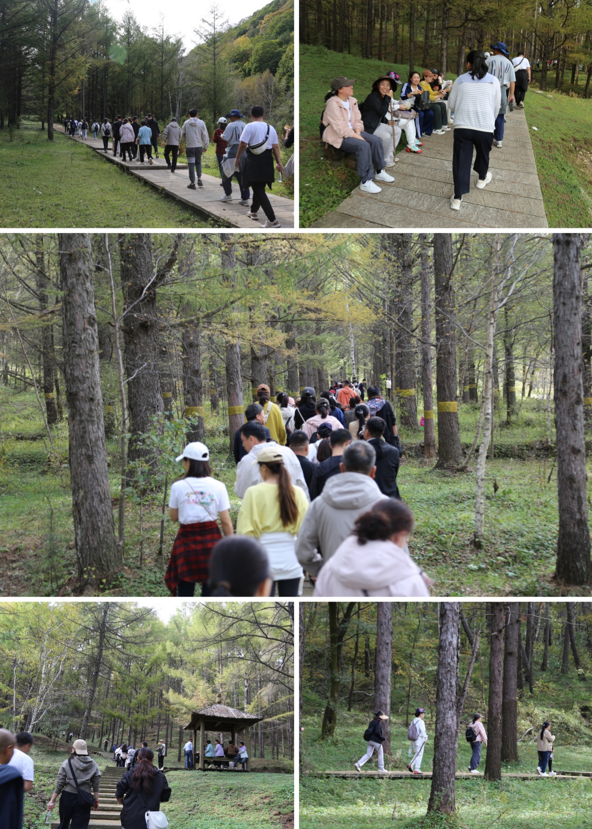 随着午后阳光渐斜,我们踏上徒步之旅。沿着山间小径,脚下是沙沙作响的落叶,眼前是渐变的秋色画卷。从金黄到火红,层林如调色板般绚烂,每一步都是风景,每一眼都是惊喜。当团队成员并肩行走,分享着彼此发现的秋日之美,我们不仅在锻炼身体,更在用心感受大自然的馈赠,用脚步丈量团队的凝聚力。