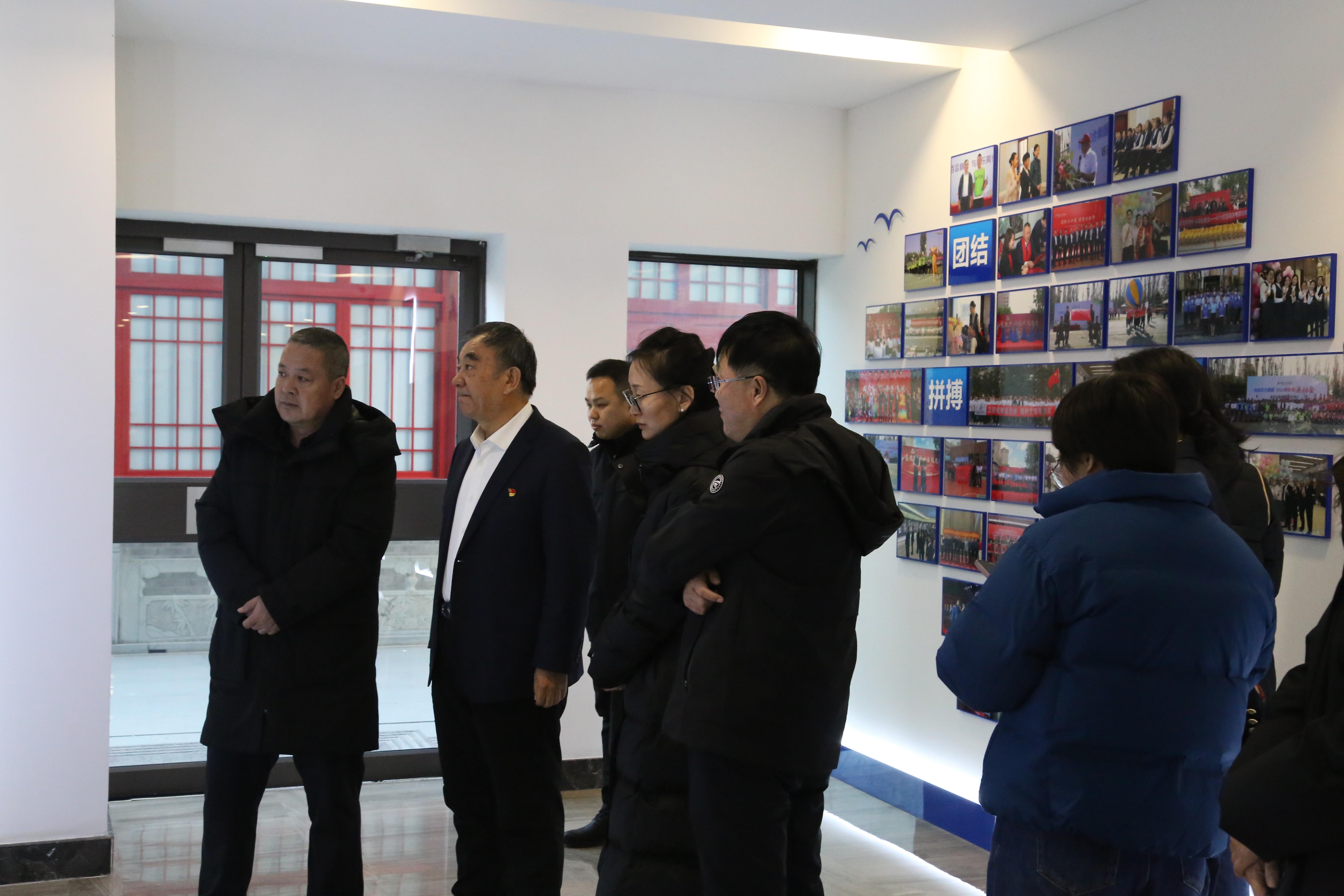 在刘俊杰书记的带领下,慰问组一行首先走进毅刚百合集团党建活动室,实地参观集团的党建文化阵地建设。刘俊杰书记介绍道:“我们始终把党建作为企业发展的‘根’与‘魂’,坚持‘围绕生产抓党建、抓好党建促发展’的思路,将红色基因融入企业血脉。”