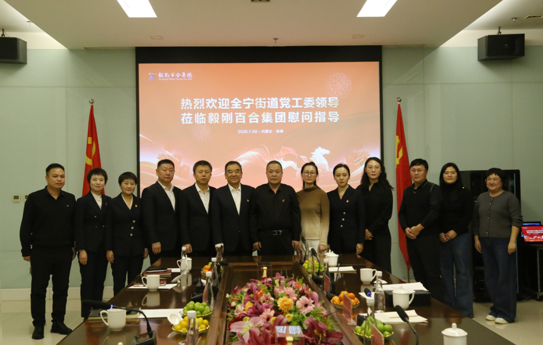 1月8日,全宁街道党工委王迎春书记、赵秀杰主任一行领导莅临毅刚百合集团慰问指导,深入企业一线倾听发展需求,为企业送上关怀与支持,并围绕党建引领、企业发展、政企协作等主题展开深入交流。毅刚百合集团党委书记刘俊杰、总经理马根明陪同接待。