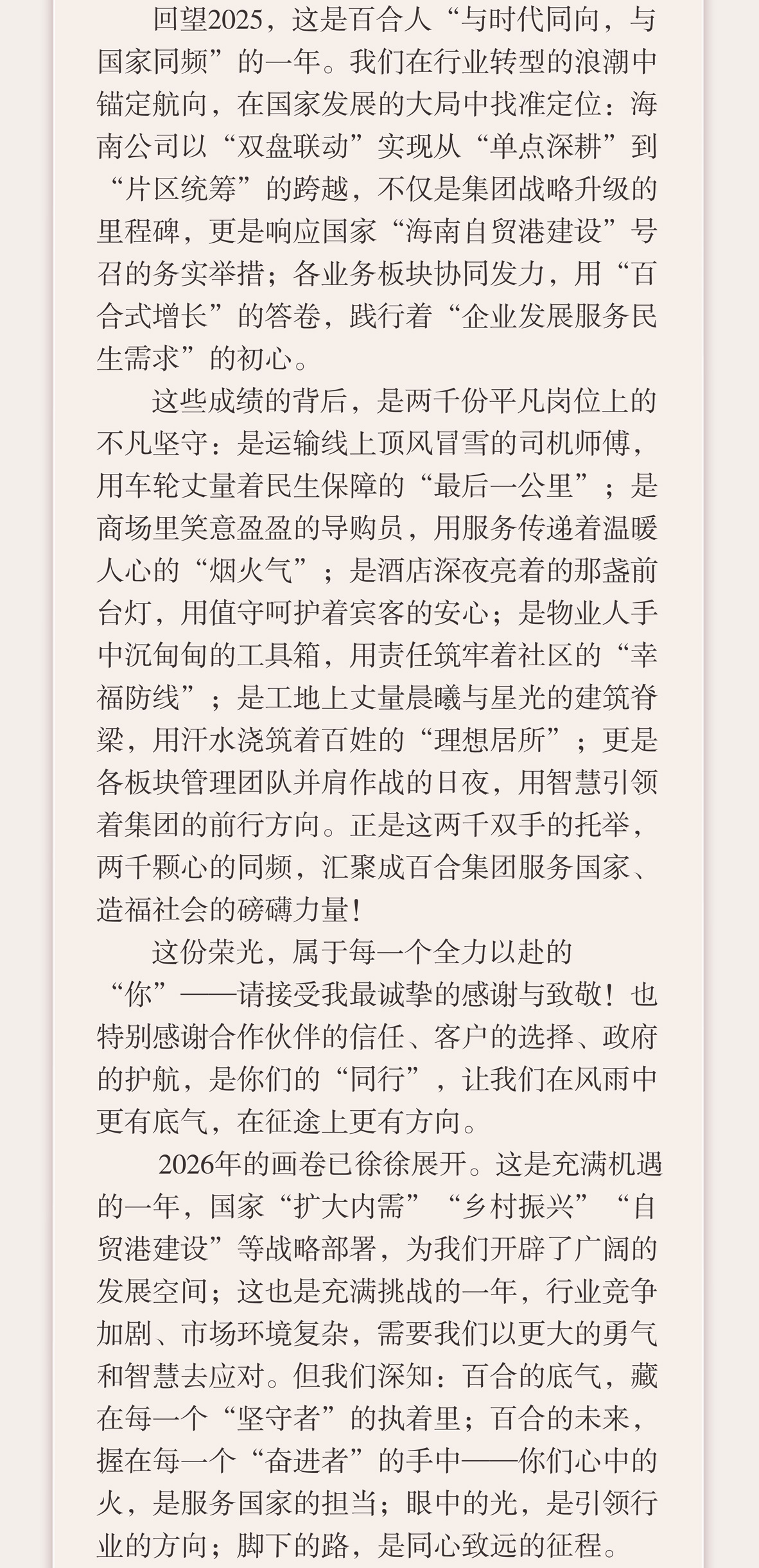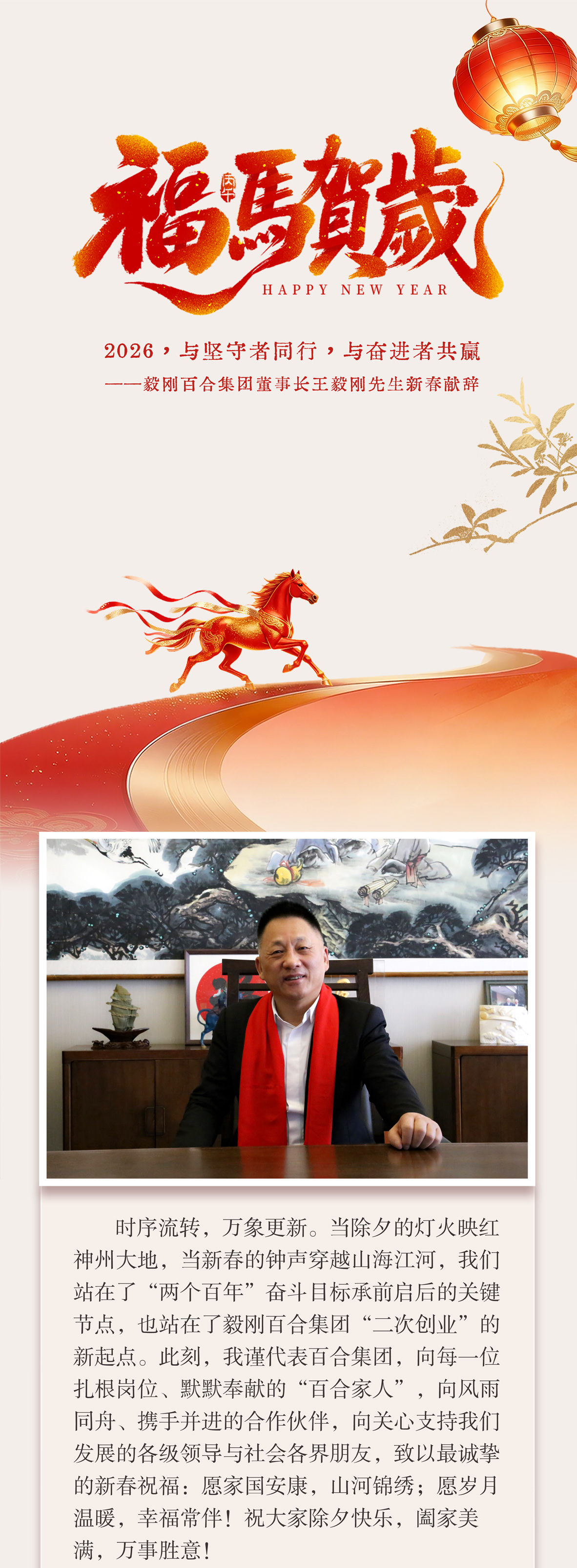 2026,与坚守者同行,与奋进者共赢——毅刚百合集团董事长王毅刚先生新春献辞
